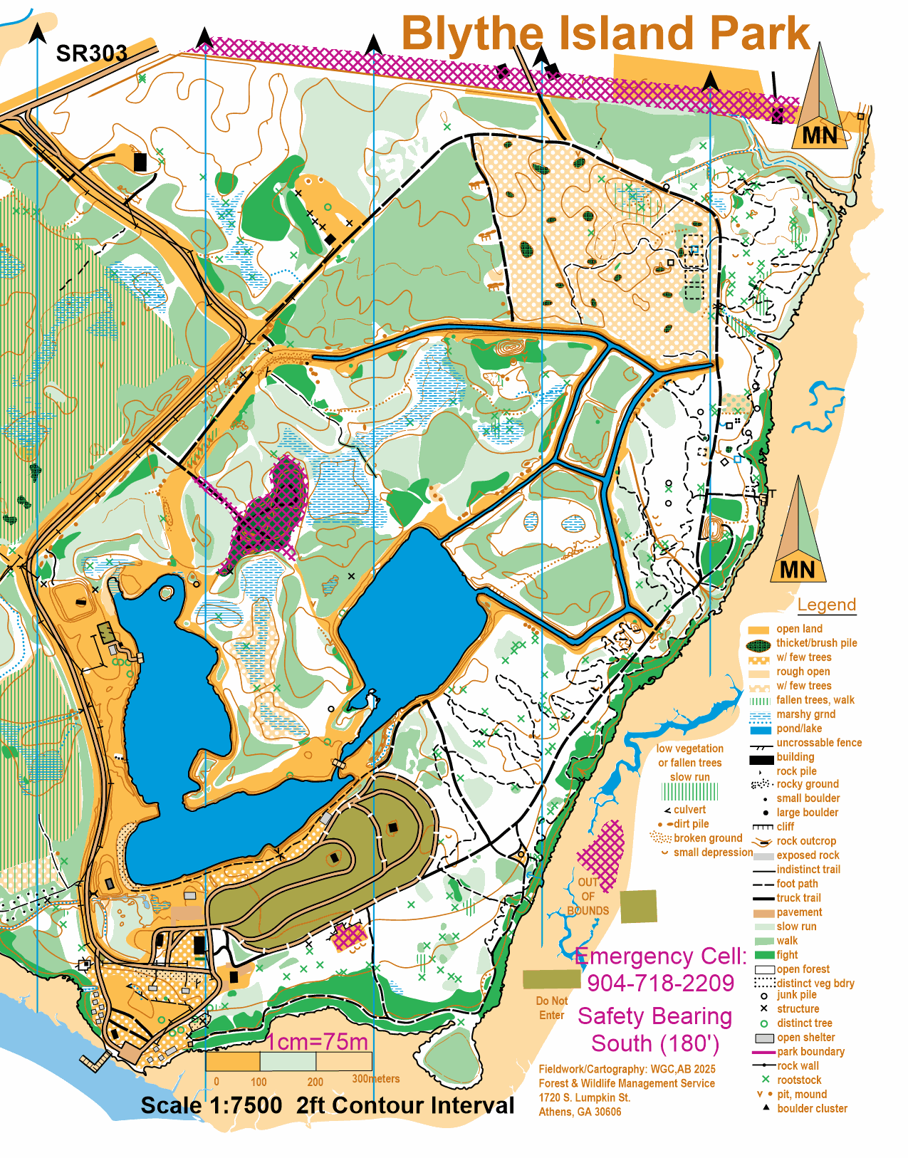 ADVANCED ORIENTEERS = SILVER - 2.5km, BROWN - 5.0km, GREEN - 6.0km, RED - 7km, BLUE - 10km. ATTACK POINTS and COLLECTING FEATURES are more difficult to discern and using PACING, COMPASS, and MAP READING to "KEEP YOUR LINE" to the control is the challenge for the most advanced ORIENTEER.